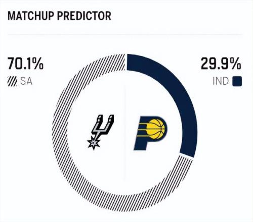 赛前,美媒ESPN对本场比赛进行了胜率预测,马刺队胜率高达70.1%,步行者胜率则仅有29.9% ,差距非常明显。